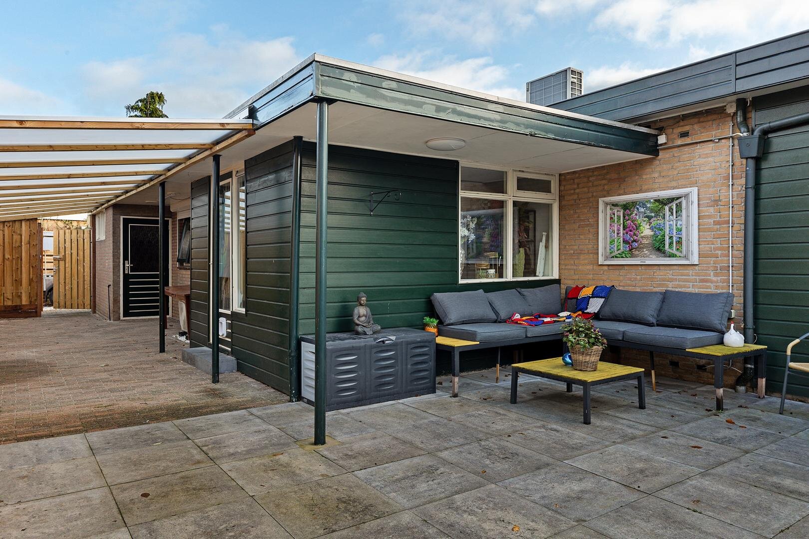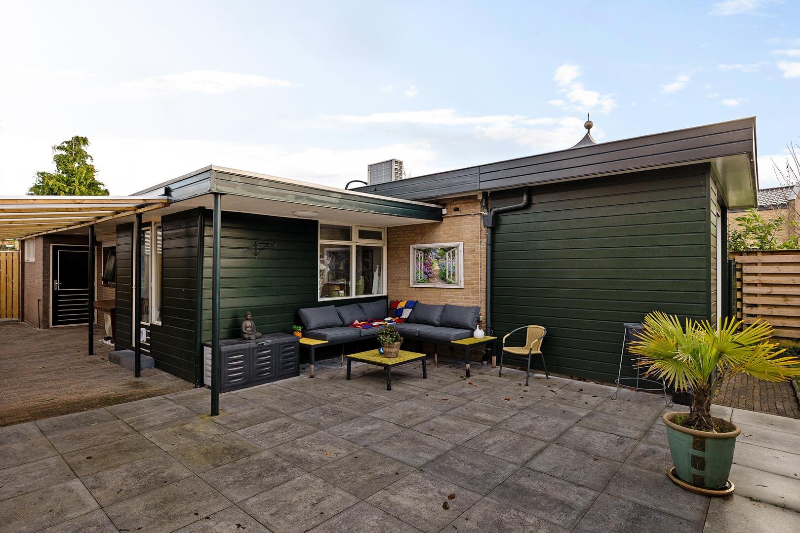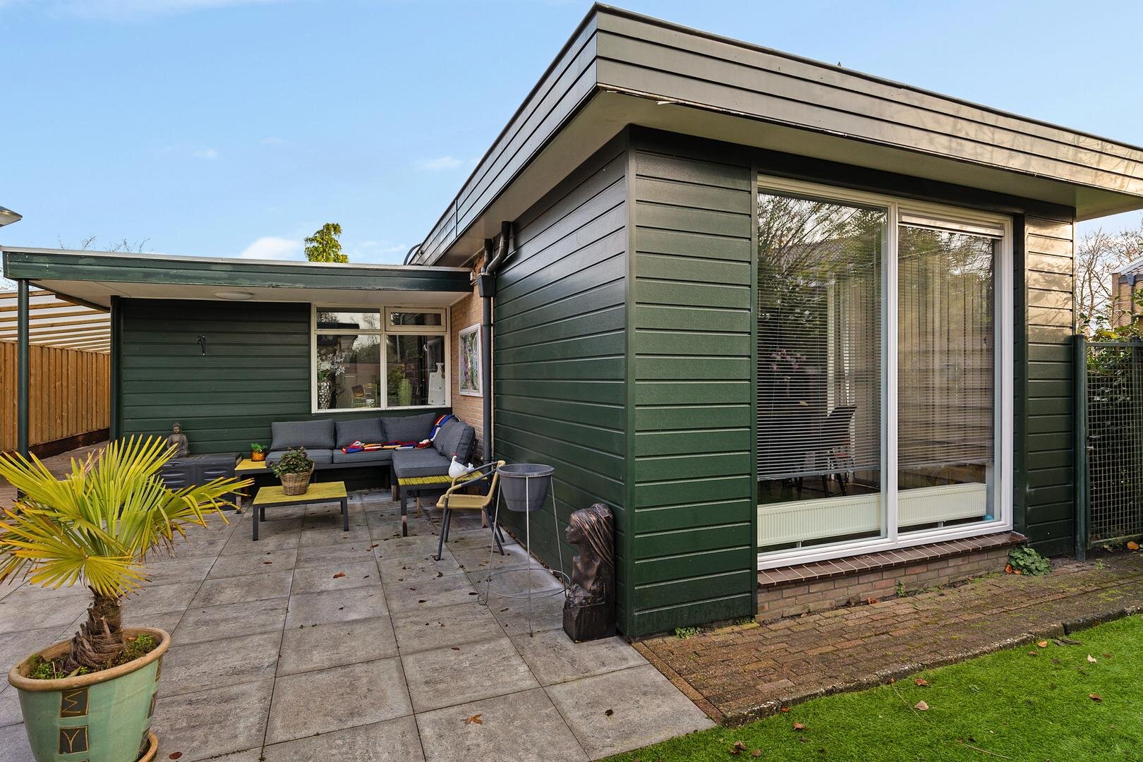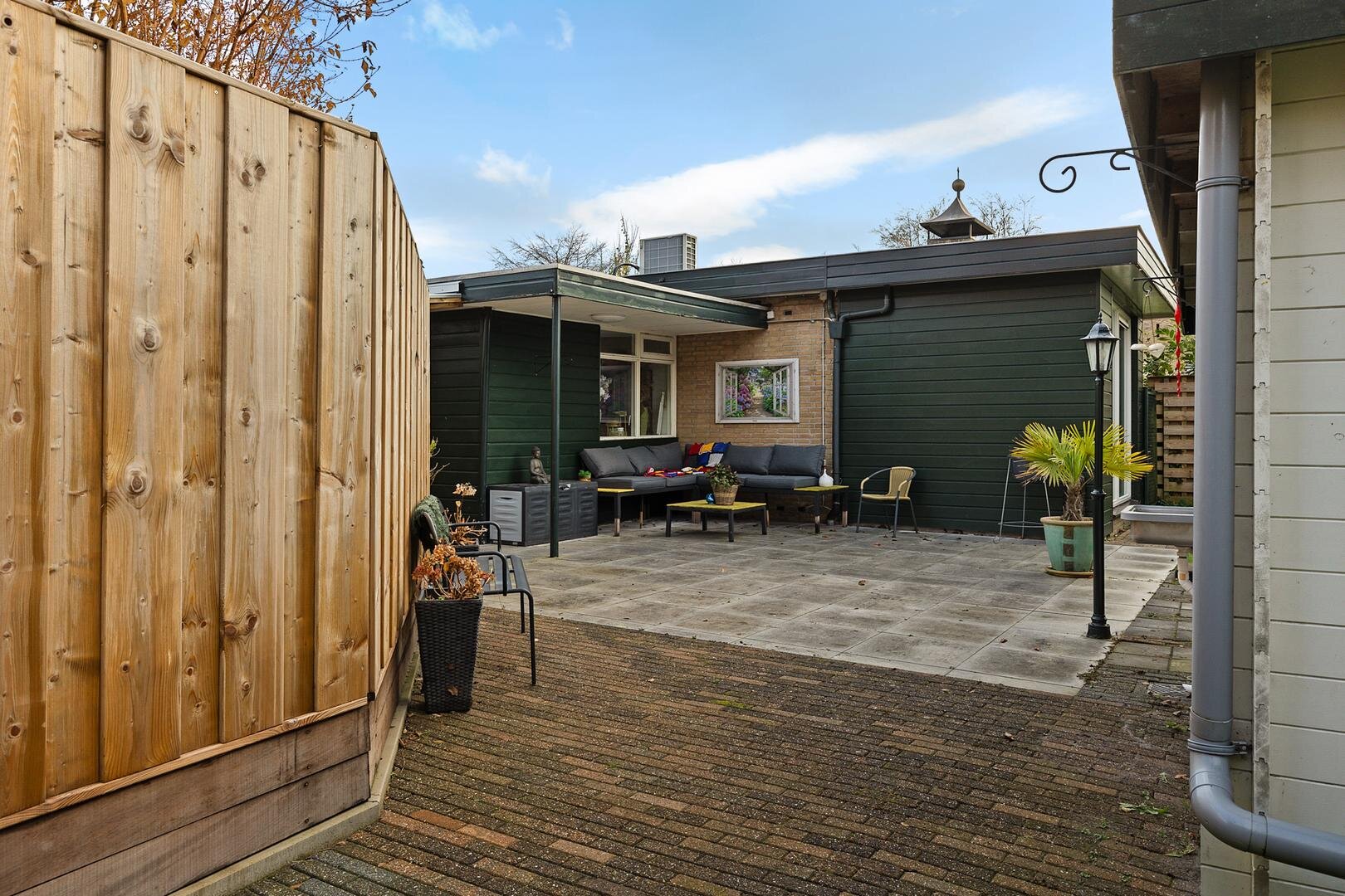 Via de achtertuin en vanaf de voorzijde van de woning zijn de garage en de kantoorruimte bereikbaar. Tevens zijn beide vrijstaande schuren via de achtertuin toegankelijk.