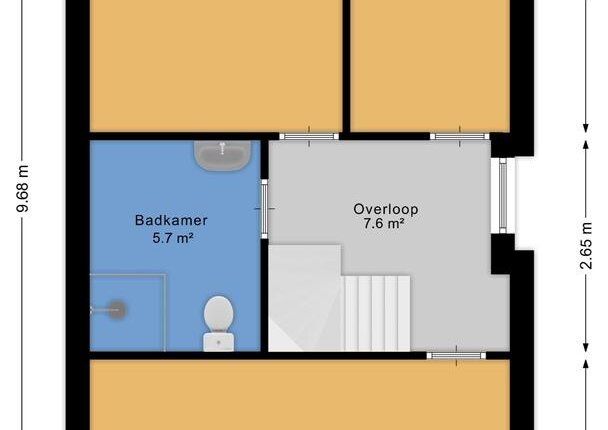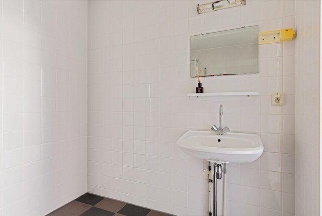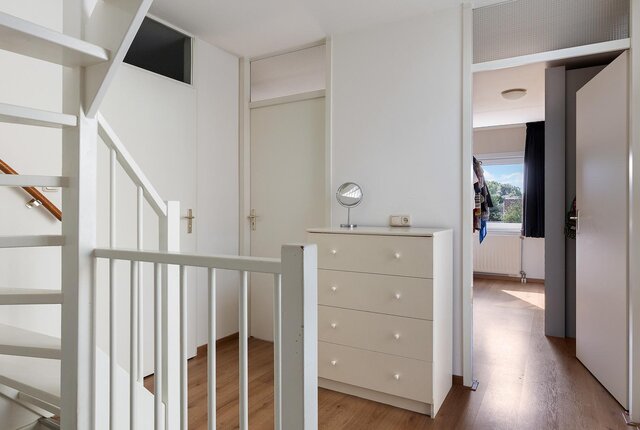 Eerste verdieping: ruime overloop, 3 slaapkamers en een nette badkamer met douche, toilet en wastafel