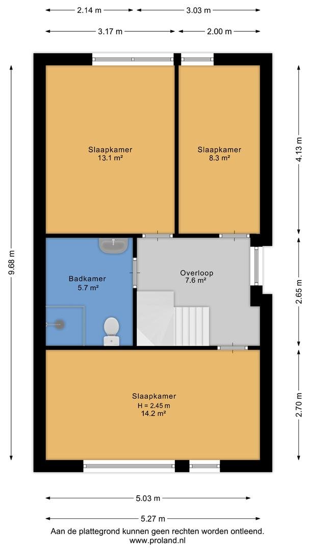 Eerste verdieping: ruime overloop, 3 slaapkamers en een nette badkamer met douche, toilet en wastafel