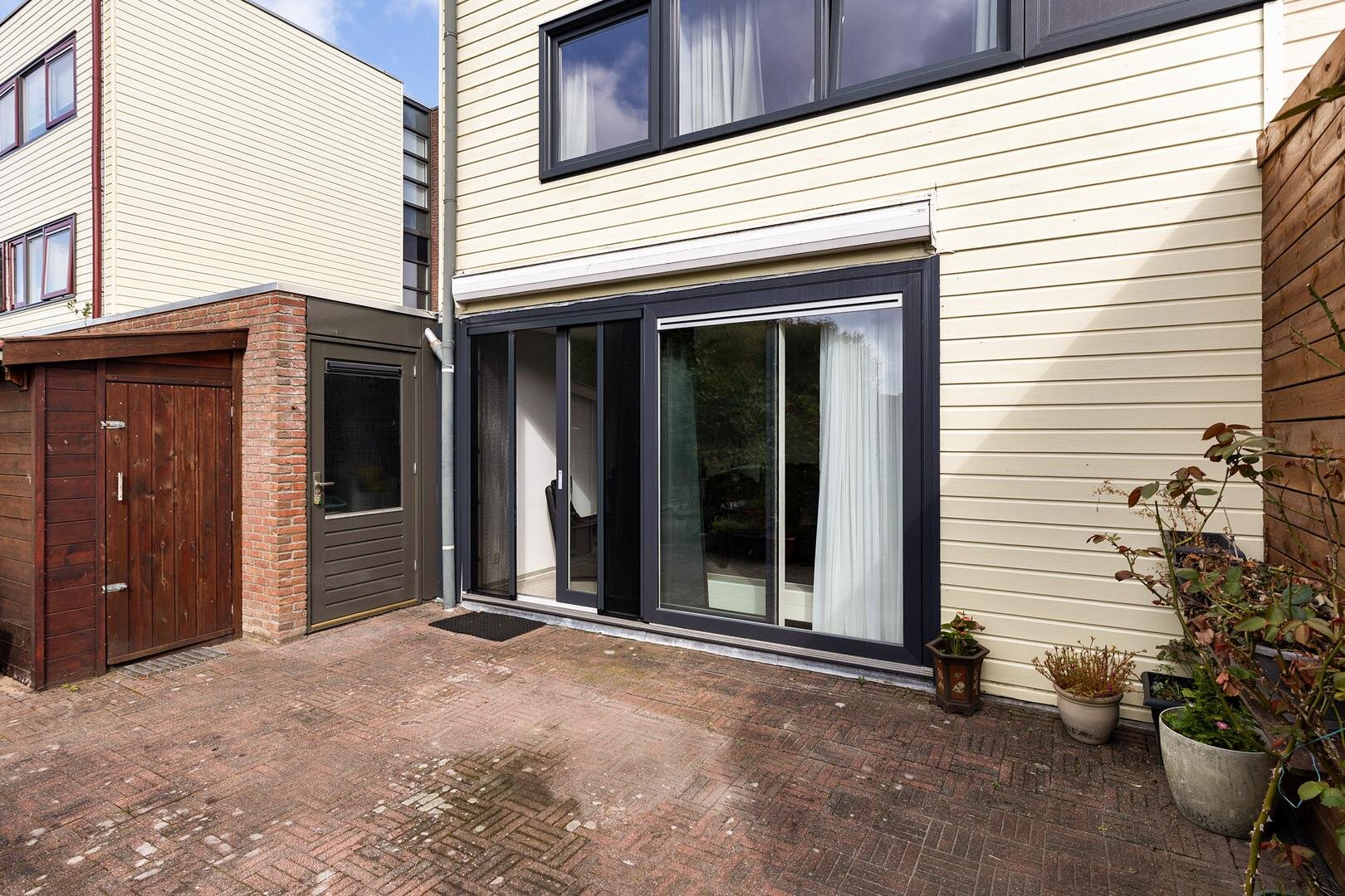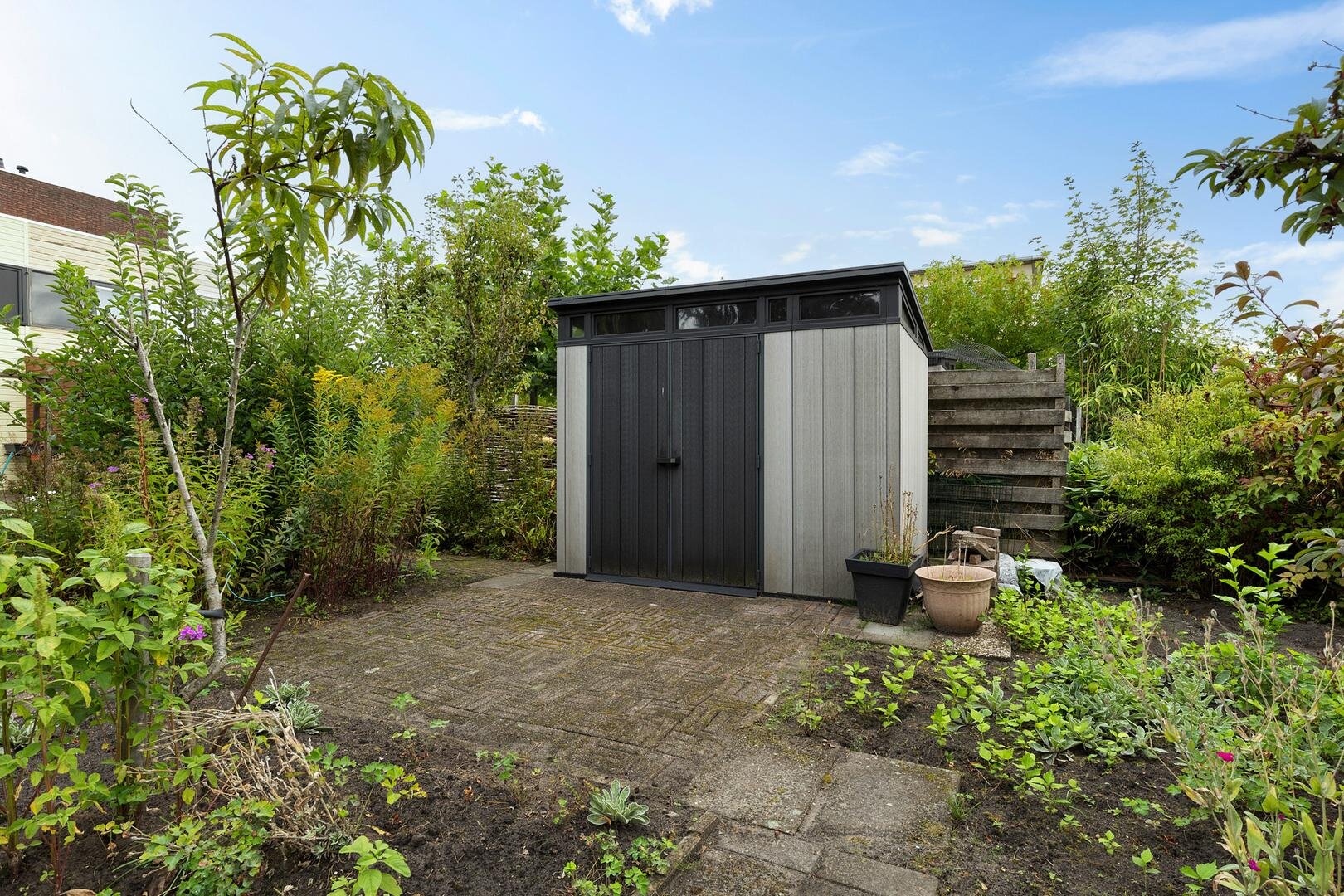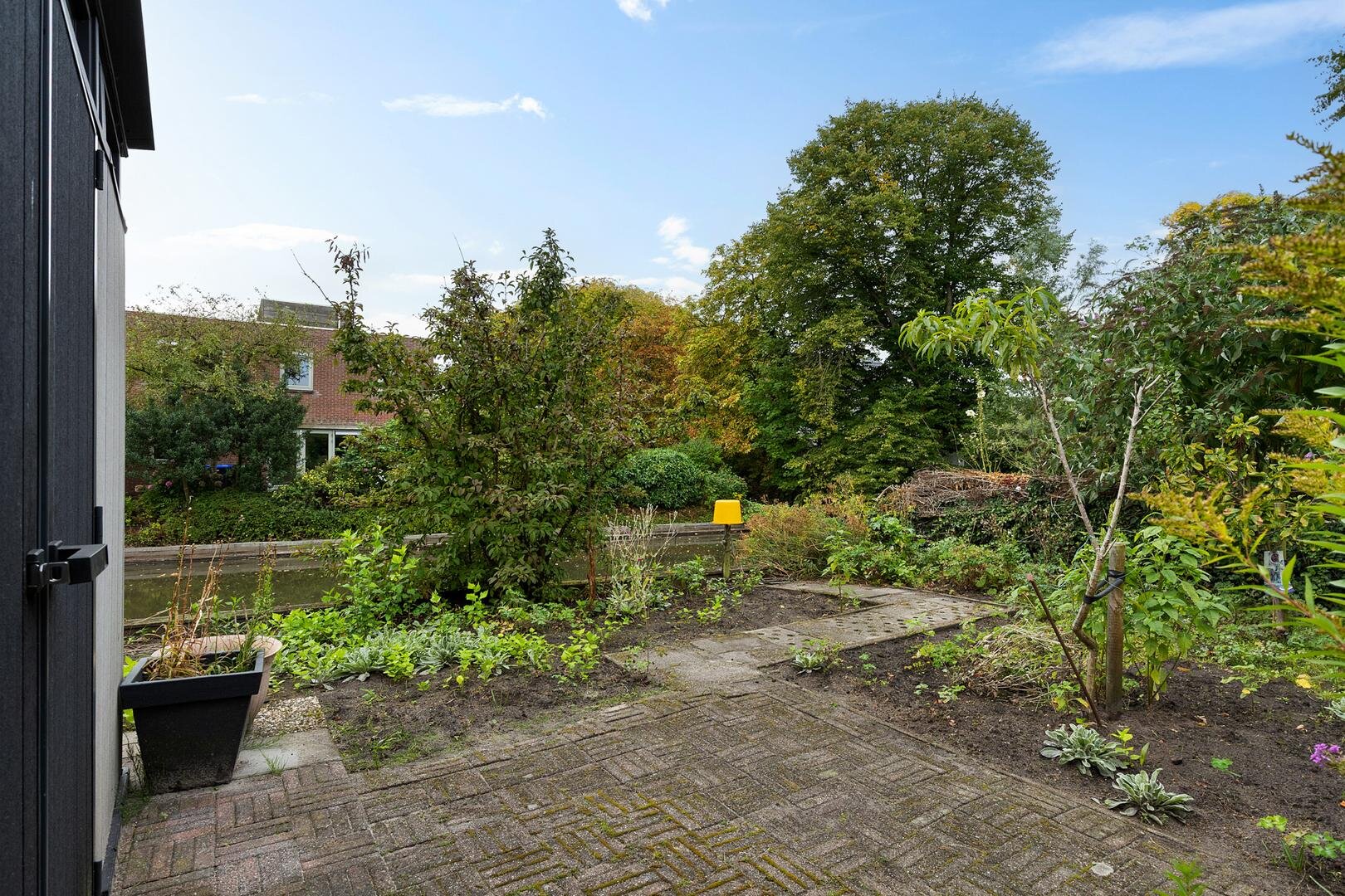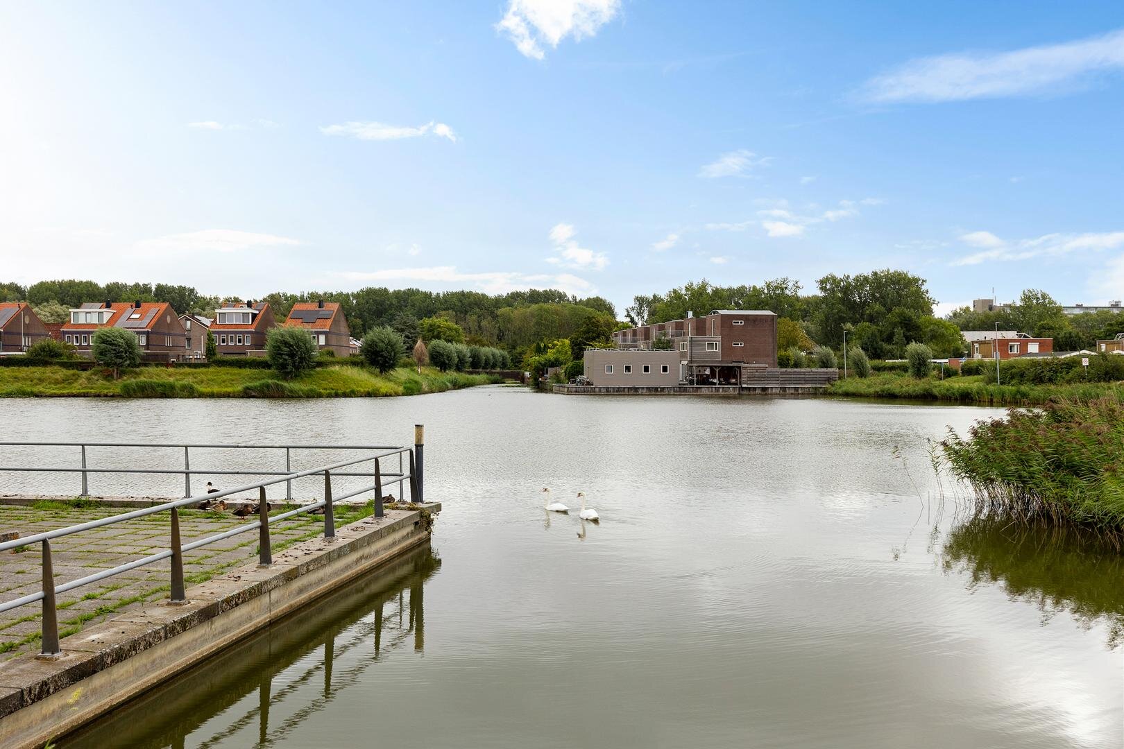 Begane grond: Entree / hal met toilet, de lichte woonkamer met grote raampartijen biedt veel natuurlijk daglicht en geeft directe toegang tot de achtertuin. De open keuken in hoekopstelling, aan de voorzijde gesitueerd, is voorzien van diverse inbouwapparatuur en biedt volop werk- en bergruimte. Via de entree aan de voorzijde of via de tuin aan de achterzijde is de garage bereikbaar en daarachter gelegen is de berging. Ook is daar de tuin gelegen op het zuiden en aan het water.