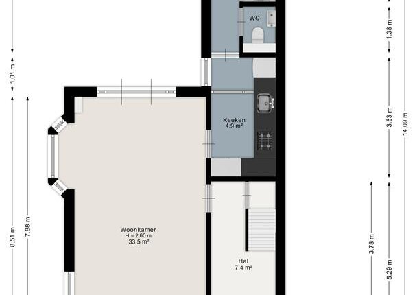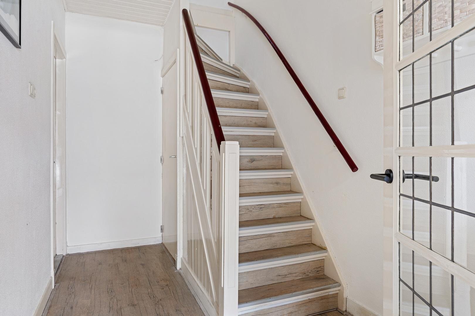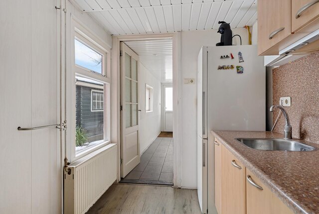 Via de entree komt u in de hal met trapopgang. Vanuit de hal is de woonkamer bereikbaar. De woonkamer is gelegen aan de voorzijde van de woning en beschikt over veel lichtinval. Vanuit de woonkamer is de keuken bereikbaar. De keuken staat in verbinding met de bijkeuken, waar zich tevens het toilet en extra kastruimte bevinden. Vanuit de bijkeuken is de achtertuin bereikbaar.